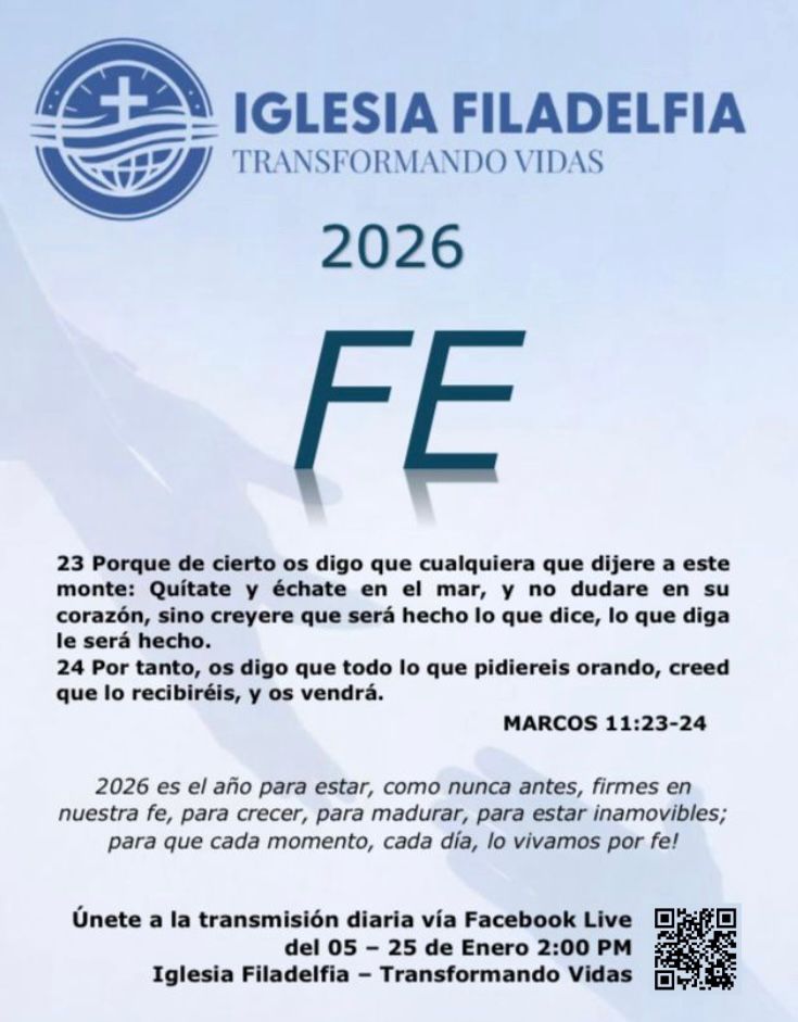 Bienvenidos a la Primera Iglesia Cristiana Filadelfia. Felices de recibir la Palabra de Dios para el nuevo año. Creemos que nos ayudará en 2025, brindándonos bendiciones y fortaleza espiritual. ¡Que la gracia y sabiduría de DIOS nos guíen!
